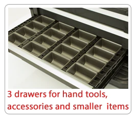 An extendable storage unit with three drawers. Whether you're a professional or a weekend warrior, you can always make your work space more space-efficient. This three drawer chest unit is perfect for organizing small parts, tools and accessories thanks to the ideal design and removable bins. The drawers extend completely, offering full access to the contents. With the help of the integrated tray, placed at the top, you can keep your hand tools within reach as your complete your projects. A latch and lock mechanism allows for multiple units from this modular range to be stacked together.