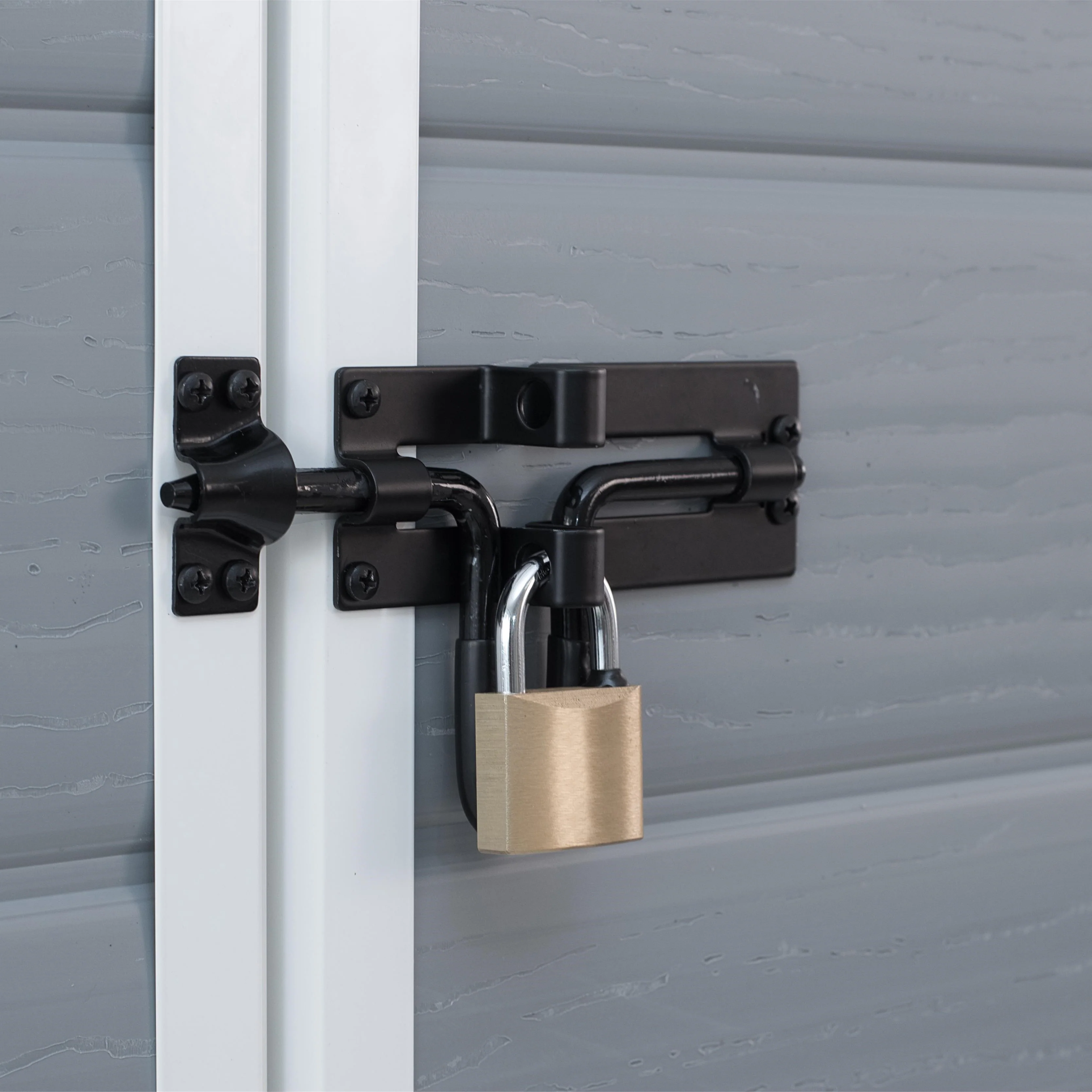 Our 6 x 8 storage sheds include a padlock-ready latch for security, along with built-in ventilation to prevent moisture buildup for an extended lifespan.