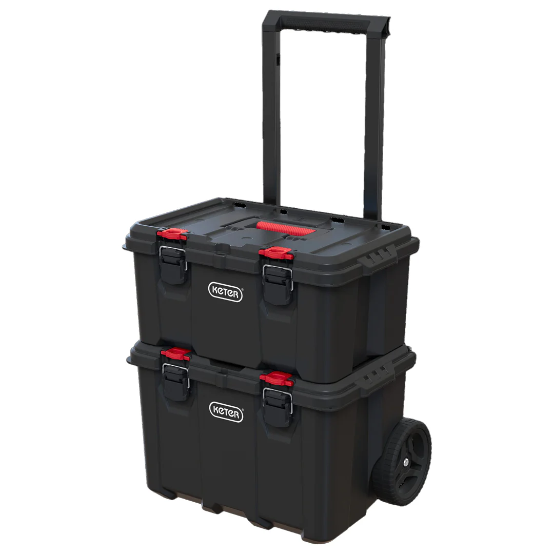 For those up for the challenge, this ultra-value set of three parts is perfect! Bring on the adventure with a rolling toolbox with a telescopic handle that fits even the tallest among us. The tool box offers plenty of space for power and hand tools alike. Wrap things up with the organiser box, holding ten boxes of two sizes for consumables and more. When needed, remove one or two of the boxes quickly and easily with two red latches.