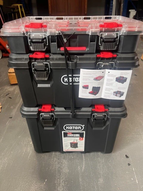 For those up for the challenge, this ultra-value set of three parts is perfect! Bring on the adventure with a rolling toolbox with a telescopic handle that fits even the tallest among us. The tool box offers plenty of space for power and hand tools alike. Wrap things up with the organiser box, holding ten boxes of two sizes for consumables and more. When needed, remove one or two of the boxes quickly and easily with two red latches.